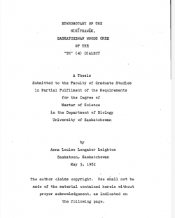 Ethnobotany of the Nihithawak, Saskatchewan Woods Cree of the "TH" Dialect